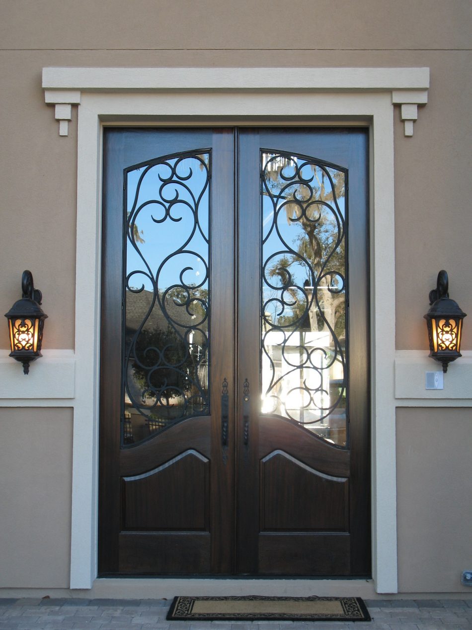 Красивые металлические двери со стеклом устанавливаются в Балабанове на входах в загородные дома, коттеджи, рестораны, магазины. Если на лестничной площадке предусмотрена тамбурная прочная дверь, тол остекленную модель можно купить и для квартиры. Для увеличения уровня противовзломной защиты зона остекления закрывается кованой декоративной решеткой, соединенной с железным листом внутри створок.